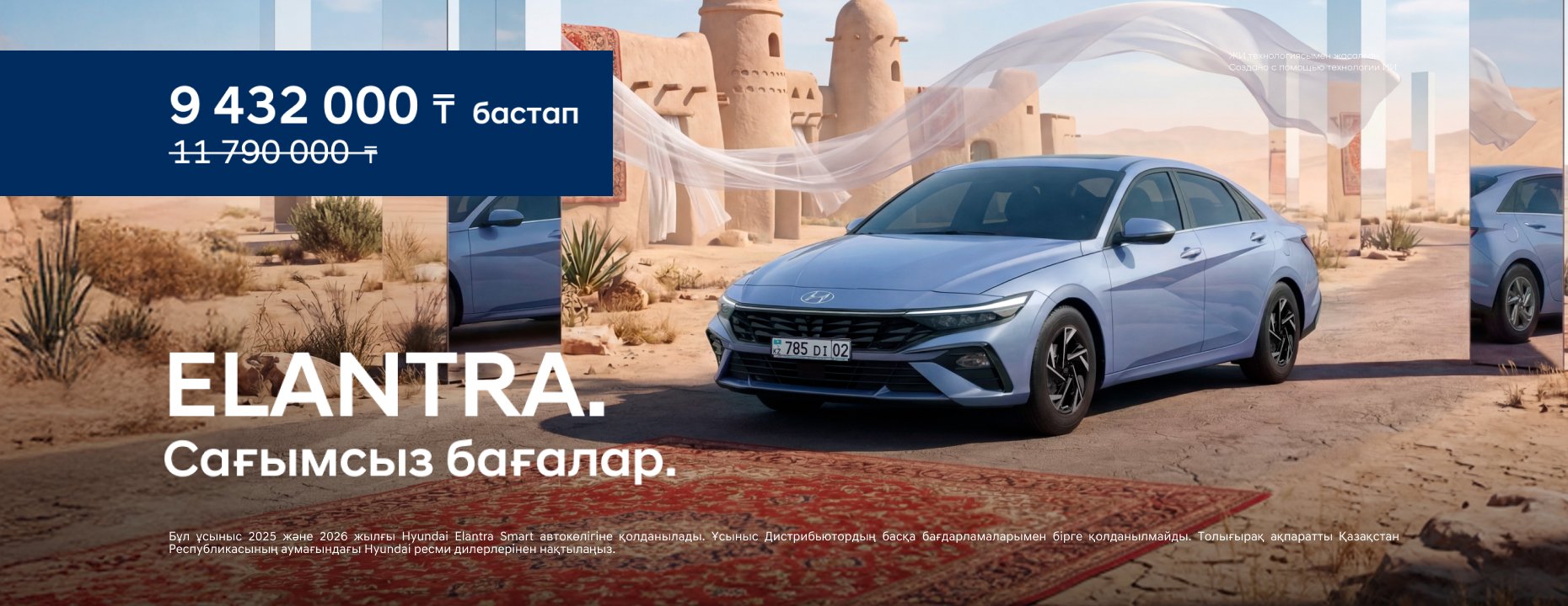 Elantra 9 432 000 ₸ бастап 2 358 000 ₸ дейін
